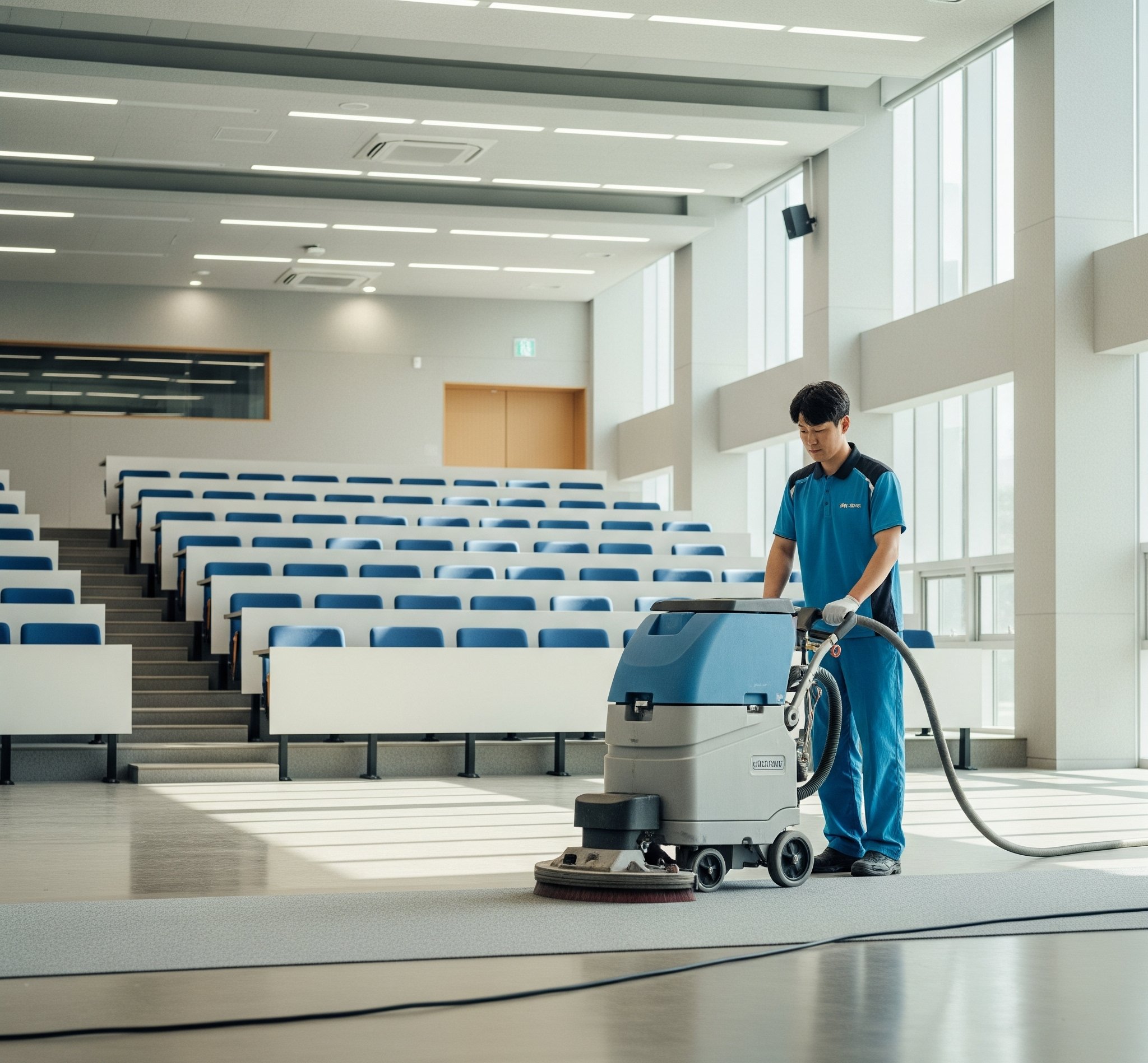 시민과 학생들이 이용하는 공공시설의 위생은 곧 신뢰와 직결됩니다. 저희는 로비의 대리석 바닥 광택 복원, 화장실의 정기적인 딥클리닝 및 소독, 강의실 및 사무 공간의 카펫 클리닝 등 각 공간별 맞춤형 서비스를 제공하여 항상 청결하고 신뢰감 있는 이미지를 유지하도록 돕습니다.