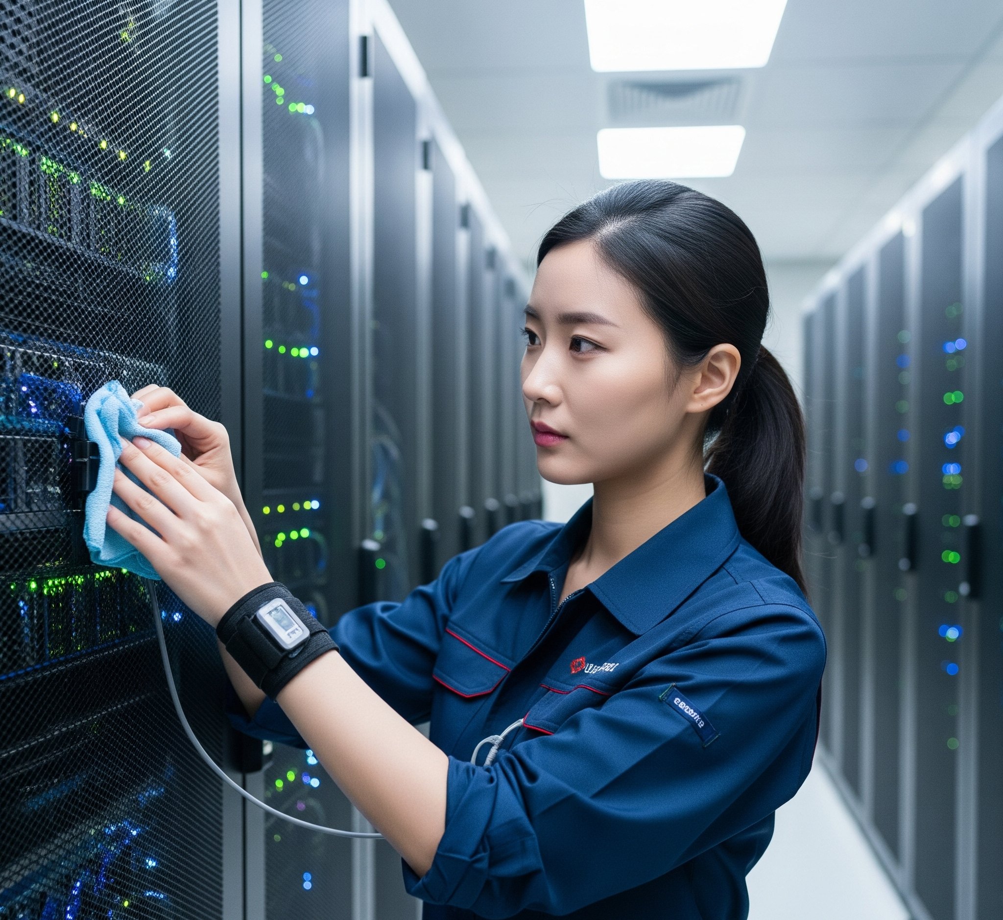 저희는 전산 장비에 영향을 주지 않는 전용 청소 도구와 정전기 방지 약품을 사용하여 바닥, 케이블 트레이, 장비 표면의 미세먼지를 안전하게 제거하고, 최적의 항온항습 환경을 유지하도록 관리합니다.